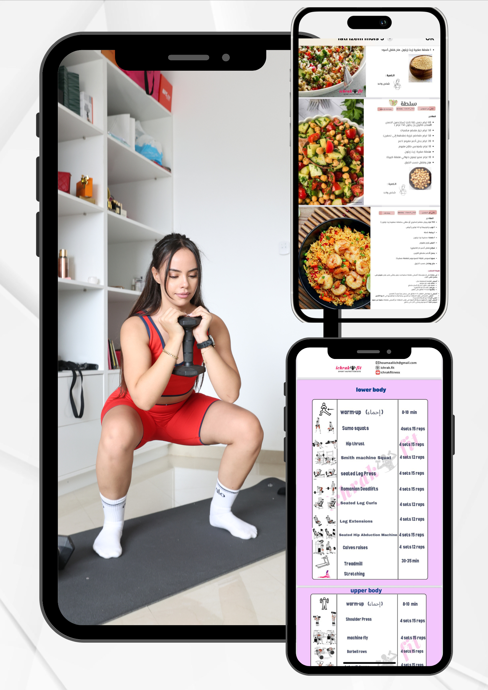 • • تصميم شخصي للتمارين حسب مستواك الحالي (مبتدئة، متوسطة، متقدمة)